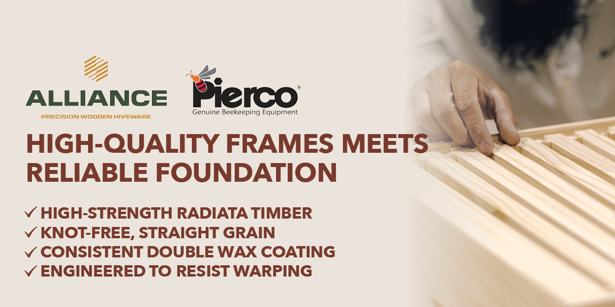 Constructed with Alliance's strong, high-quality Radiata timber and Pierco's durable food-grade plastic foundation, these new frames are the perfect upgrade for your bee yard.